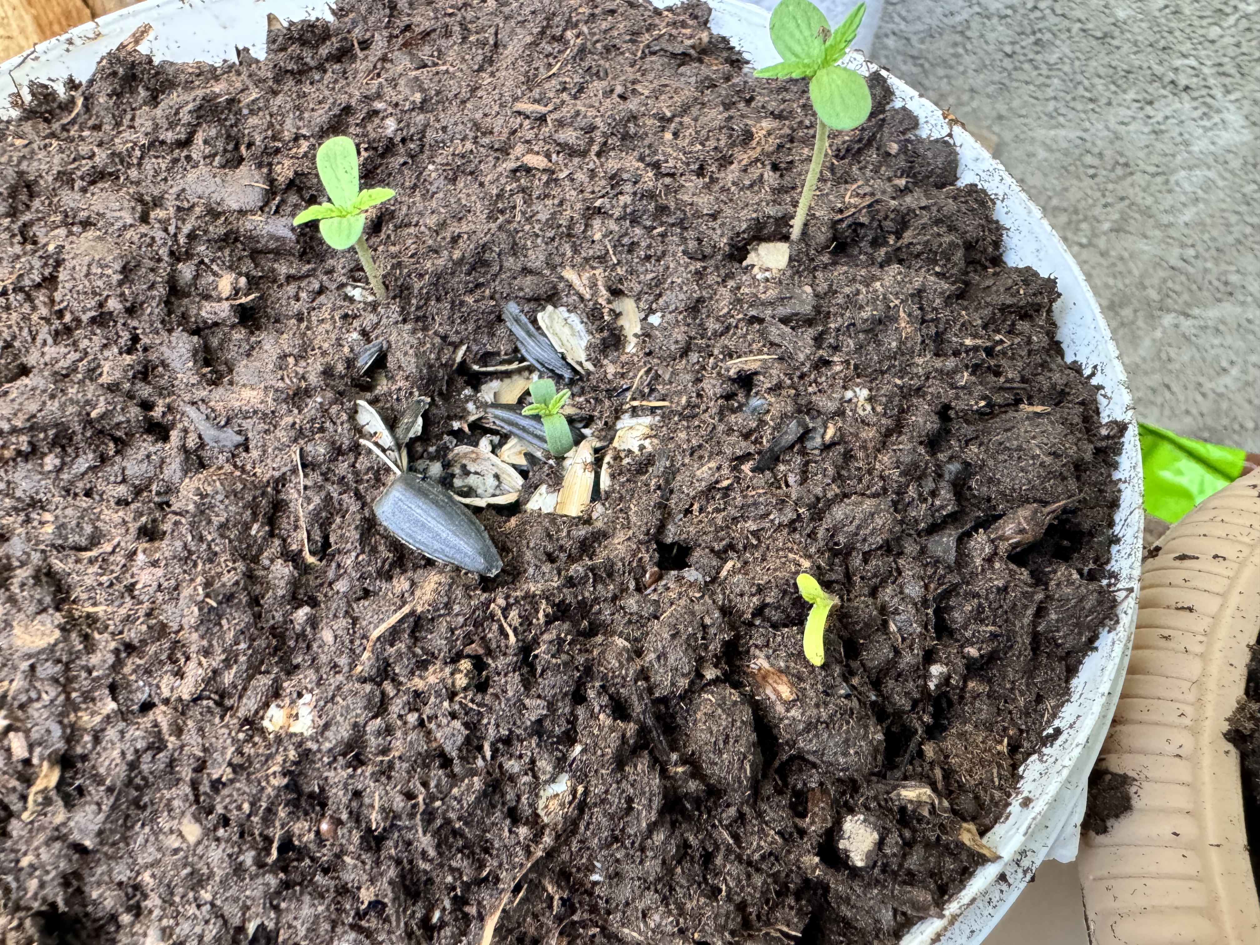 Все взошли и растут, единственное, что один проклюнулся чуть позже