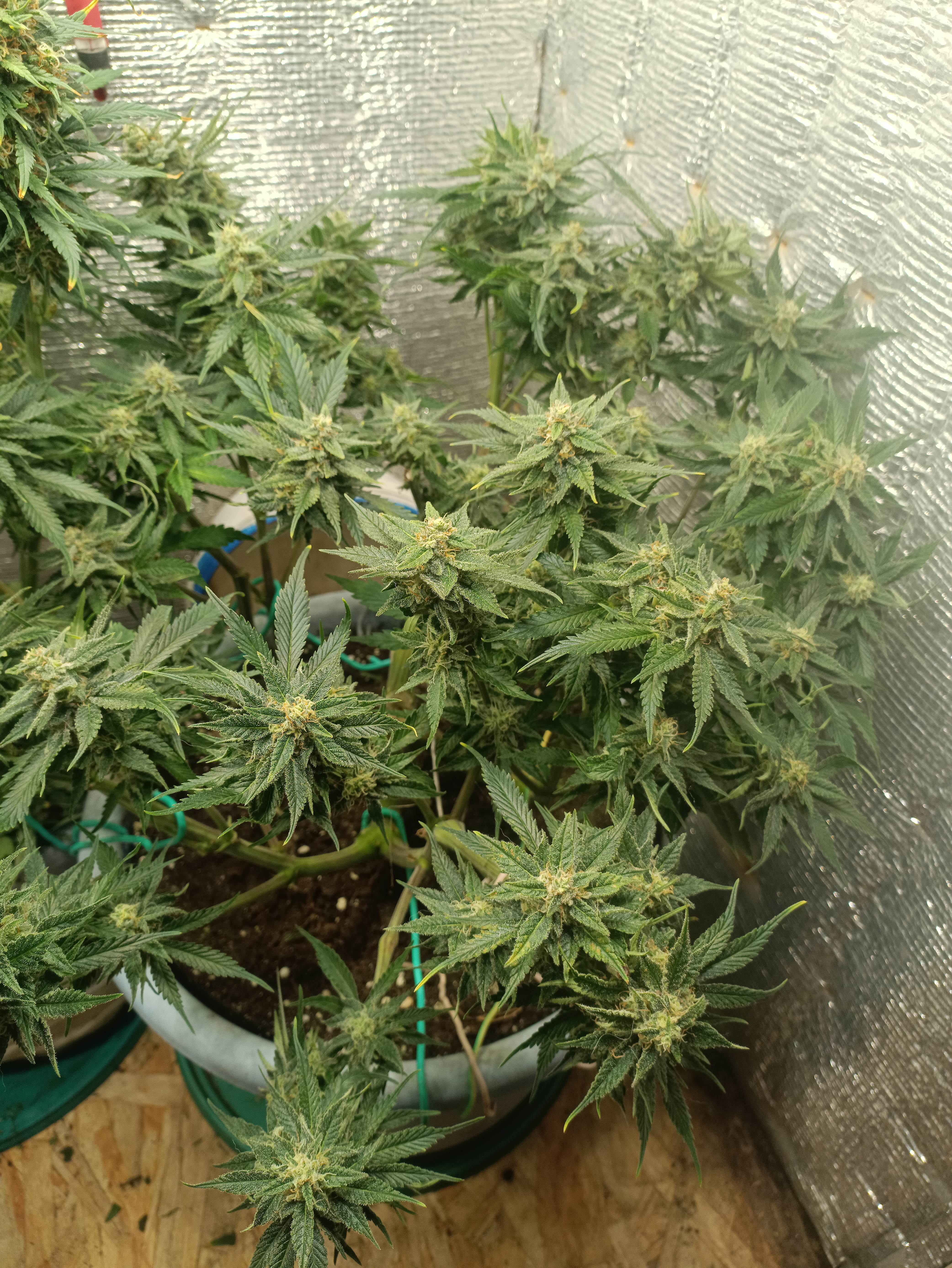 Сорт хороший, смолистый и перспективный! Простой гров. Сильная устойчивость к стрессу. Два куста росли немного по-разному, один дал более плотные бутоны, другой более рыхлые, но разница не велика, видно что в одном кусте родительские гены проявились чуть сильнее, чем в другом, бывает такое не страшно, на качество это не повлияло. Растения созрели практически по паспорту, нужные объемы горшков с урожаем были получены.