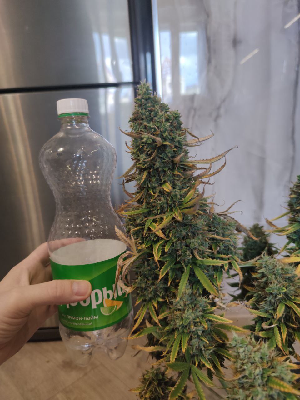 Вырастить этот сорт с преобладанием сативы было очень легко. Огромные и ароматные шишки были густо покрыты светящимися трихомами (название Лимонная Дымка очень подходит), так что эффект был убийственным, как я и ожидал. Некоторые бутоны выросли маленькими, но на основных шишках шишки были большими и очень липкими.